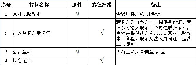 客户方所需提供材料: